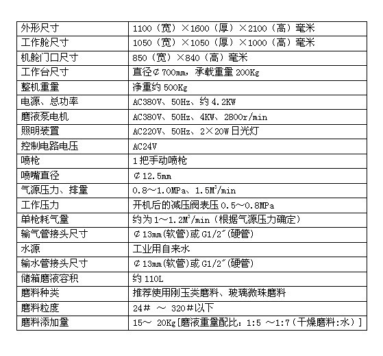 2) 可使用微细砂材,用于精密工件的表面处理。